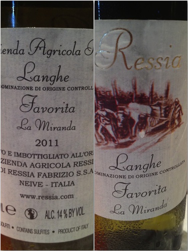 2011Ressia Langhe La Miranda Favorita 品飲紀錄: 馥郁芳香是它給我的見面禮, 清淡的酒體酸度漂亮, 超適合當開胃酒或搭配海鮮料理.