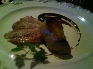 法式煙燻鴨胸&鴨肝凍佐焦糖櫻桃醋醬 (這樣的鴨肝凍口感讓我完全退怯)