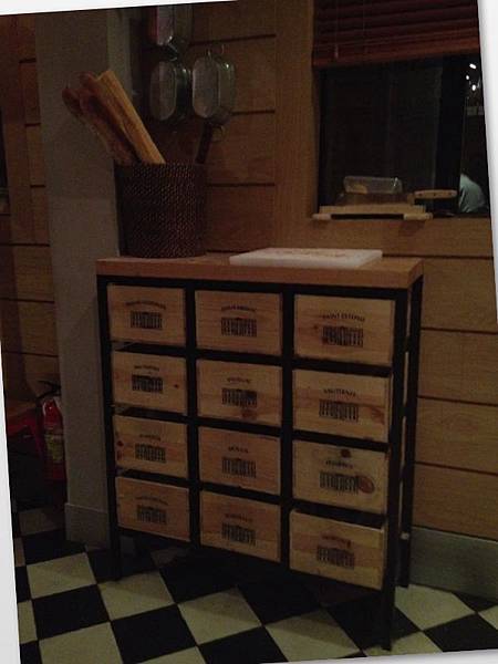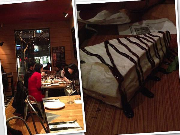 長條形的店內大量使用木質傢俱, 木板與地磚的紋路, 自然融和, 就好像小酒館內的餐點與葡萄酒, 是那樣的和諧美妙.