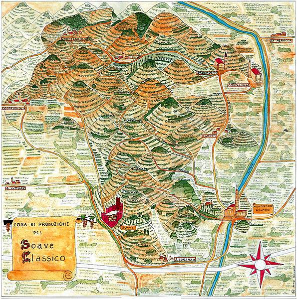 1931年Soave就已經是義大利最重要的葡萄酒, 被認為是一種“典型且享譽盛名”的酒, 它在1968年就被列入義大利法定DOC葡萄酒產區.當Soave後面加上Classico一字, 意味著古老傳統的經典區域, 也就是僅限在Soave與Monteorte d’Alpone兩地間的山丘地段. 從一片葡萄園中浮現的城堡, 教堂, 鐘樓及華麗的貴族別墅, 展現當地豐富的歷史與傳統, 並且與它的主要產品緊密連結.