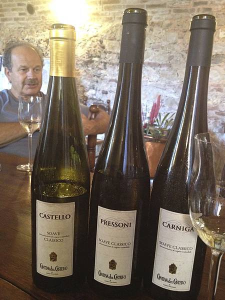 而原先就是釀Recioto di Soave DOCG的丘陵地, 遵循新設立的耕種與釀製規範, 也可以釀成不甜的Soave Superiore DOCG酒. 這些山丘地釀的Soave, 釀好得存放至收成隔年的9月後, 裝瓶也得至少再經過3個月的瓶中熟成, 才能開放到市場上販售; 強調酒的熟成與複雜度, 酒精濃度不得低於12%. 如果酒的熟成時間超過兩年以上, 還可以標上Riserva字眼, 但酒精濃度最少要超過12.5%以上. 藉由這形態的酒, 你可以想像, 在不鏽鋼槽中釀造出來表現不錯的Soave, 不僅只是鮮活與易飲, 也擁有如同好年份的Soave, 可以放上個十年的陳年潛力. 這酒的顏色與香氣都會變得更深厚且有層次.