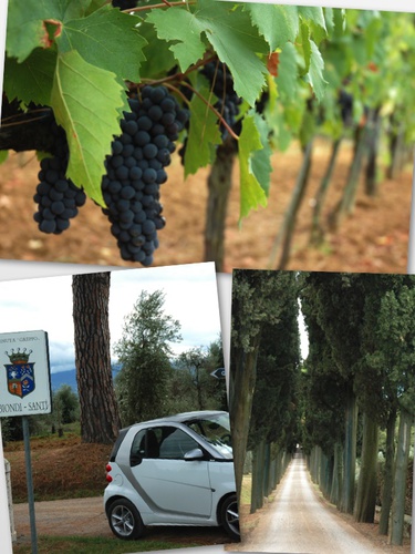 這是我在Montalcino最後一天的重點行程, 歷經整夜天空下起綿綿細雨, Montalcino早上的氣溫驟降至約20度, 讓人明顯感受到前所未有的涼意. 收拾起行李我揮別了Montalcino古城, 一個我好喜歡的山中小城, 再次踏上一段新旅程. 依舊在蘋果的智慧型手機輔助下, 我迷路於托斯卡尼山丘裡, 把smart車停靠路旁, 遲疑了一下, 還是決定繼續再往前開一小段路...., 就在上下幾個緩坡及轉彎, 我快要放棄想折返時, 先是看到了 Greppo的字眼, 接著又看到了Biondi Santi... 噢耶 ~