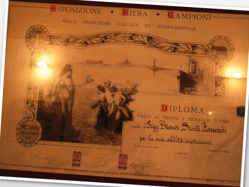 Tancredi Biondi Santi年輕的時候, 就隨側父親Ferruccio學習葡萄園與酒窖的許多奧祕, 甚至特地遠赴義大利東北邊Veneto Conegliano的學校學釀酒, 最後還從Pisa大學取得了農業學學位. MCMXXV(1925) 年在羅馬一場義大利境內與國際比賽中, 他更獲得了釀酒金牌!