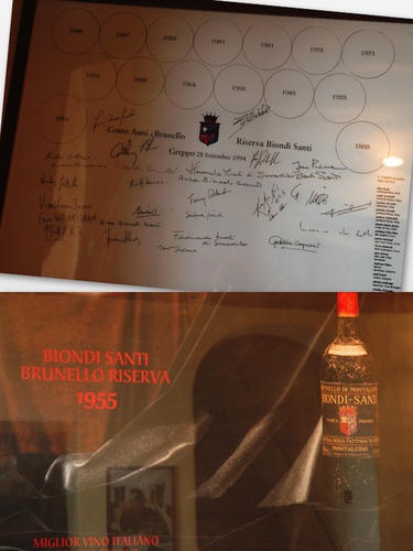 這讓我聯想到, Serena有提起, 1994年9月Franco Biondi Santi邀約16位具國際權威的葡萄酒媒體與評論家, 一同參與Biondi Santi Brunello Reserva垂直品飲, 從1888, 1891, 1925, 1945, 1955, 1964, 1968, 1970, 1971, 1975, 1981, 1983, 1985, 1987, 1988年份, 認識橫跨兩個世紀的Biondi Santi Brunello, 了解這些酒與Montalcino的關聯, 發掘什麼是傳承數十載卻依舊不變的Biondi Santi Brunello傳統... 最後這群人給的評價, 也將Biondi Santi Brunello酒經得起漫長歲月等待的道理呼之欲出~