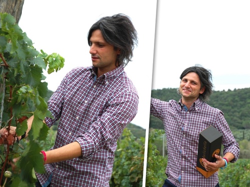 轉眼間, Ale隨手撿起兩大顆石頭, 回憶起他們花了約三年的時間, 徒手打造出這一片新葡萄園, 他形容說 "這是我的愛... 只有Bulichella擁有這片山丘地, 其他的酒廠大多在平坦的山谷間..." 看著他自信滿足且閃閃發光的表情, 我完全能理解那份對土地的熱愛! 我也才意識到, 原來前一晚在酒莊吃飯點來喝的那一杯, 正是來自這樣的園地... 漂亮到猶如葡萄園被灑上亮麗水彩色澤!