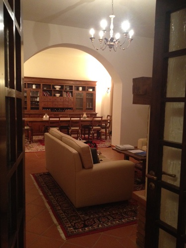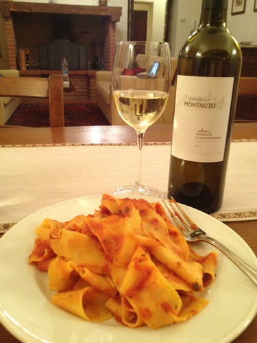 從冰箱開了瓶這間莊園的酒 2011 Vernaccia di San Gimignano, 倒了一杯打算讓自己情緒放鬆些。但這房子實在安靜到我的每個動作都很清晰, 少了電視音響這種現代化配備, 加上我的3G有點慢, 所以打開了筆電iTunes, 讓音樂陪伴我!