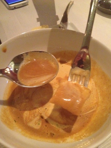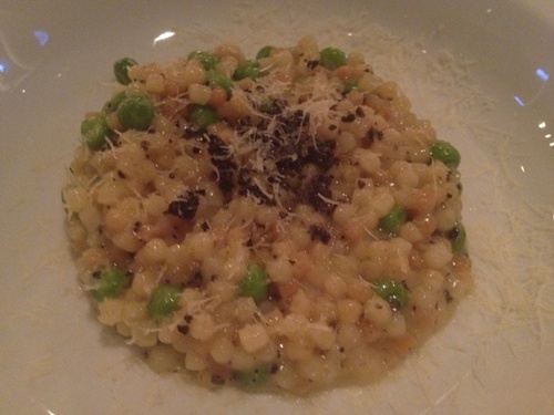 薩 丁尼亞麵疙瘩 樣子超可愛, 好像珍珠喔! 口感更是彈跳! 很像煮半生熟的小粉圓, 在嘴裡一直滑來滑去, 牙齒老是對不到, 卻又好有嚼勁! 搭上一點點松露以及現刨乳酪 oh lala ~ in heaven !