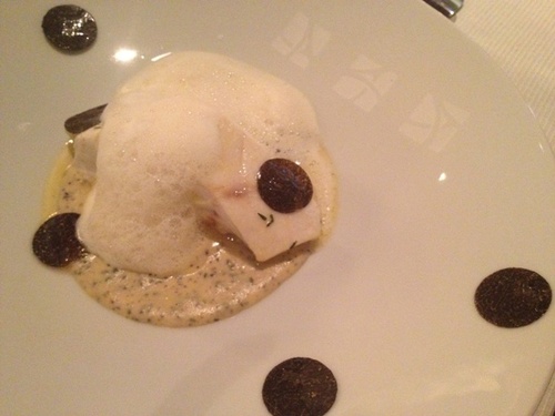 這是我單點的主菜 : 鱸魚 + 好幾片的薄松露