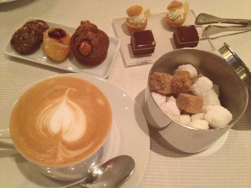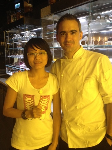 吃完主菜, 在服務人員建議下, 我們起身到角落的甜點區選想吃的甜點....就這樣, 遇見走出廚房的行政主廚William。他頗具親和力, 算是很愛跟人家聊天的主廚, 感覺沒什主廚的脾氣! 輕鬆聊了兩句, 朋友提議我跟他拍照, 我開玩笑對他說, 我不想拍照耶^^ 哈哈! 他笑了~