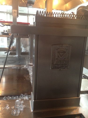 拍完照, 我才開始要認真選我的甜點.....他卻主動邀請我們進去他的秘密基地~中央廚房! 這主廚熱情的程度還真讓我訝異! 畢竟這種高級餐廳, 很少在沒預約情況下, 甚至在營運時段內, 會讓客人走進廚房.... 我就這樣拿著免費的情人果棉花糖, 跟著他走進廚房!
