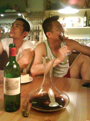 邊喝邊聊天, 才發現原來阿強店內有政穎的醒酒器, 二話不說, 把所剩不多約120ml 的酒進去搖晃