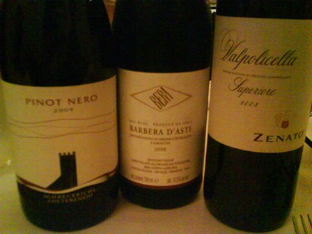 Colterenzio Pinot Nero 2009 from Alto Adige. Bera Barbera d'Asti 2008 from Piedmont.
