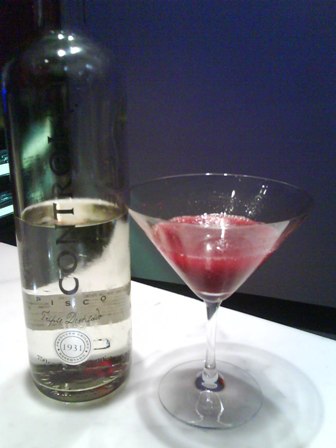 Pisco + Cranberry juices + fresh blue berries + sugar