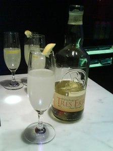 可能是自己工作習慣養成, 我先從純的開始喝。白色的呢! 也就是蒸餾完不經過熟成的原味。我聞的到一點點淡淡的葡萄果香, 但沒有太多可期待! 在我定義裡, 它本來就該是拿來做為特調的基底酒, 所以這樣的感覺恰到好處。 這Piscoberry冰沙是當天特調之一, 不過似乎調得有點不夠優, 喝起來有點苦澀。