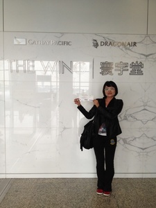 晉升商務艙, 對於飛短線如台北香港的飛行哩程及時數, 感受不到太大差異, 不過, 香港的國泰貴賓休息室 (名為寰宇堂) 還頗讚! 一走進去那種旅客等待航班的氛圍, 就已經足足差了好幾倍! 我興奮的像個小孩子般, 東繞西繞, 認識新環境。 雖然整身穿著輕便的我, 看起來就不像是出差的旅客。但沒什麼手提行李的我, 趕緊用那才剛用公司續約的IPHONE假裝一下商務人士在個人包廂中忙裡偷閒的感覺。頓時覺得兩個小時內的轉機時間好像縮短了。